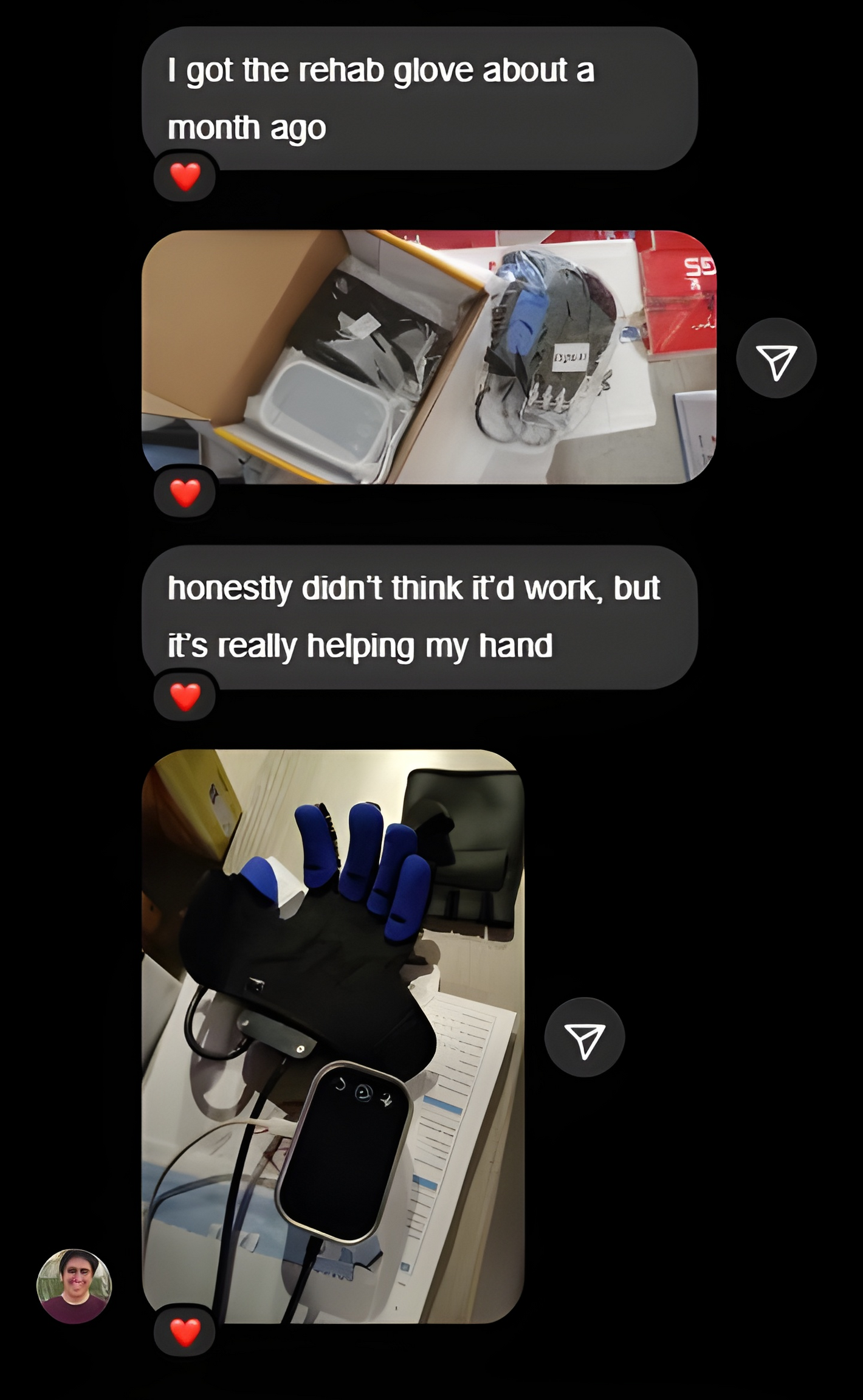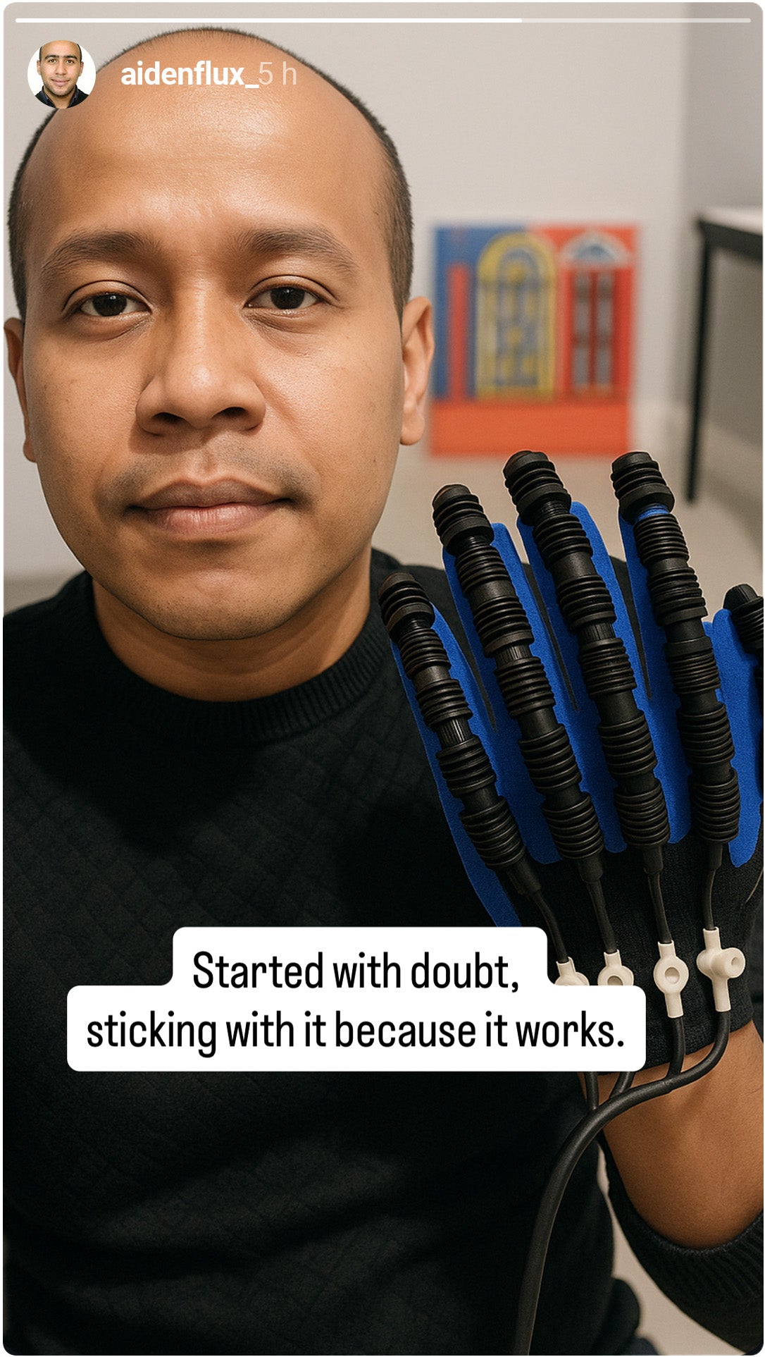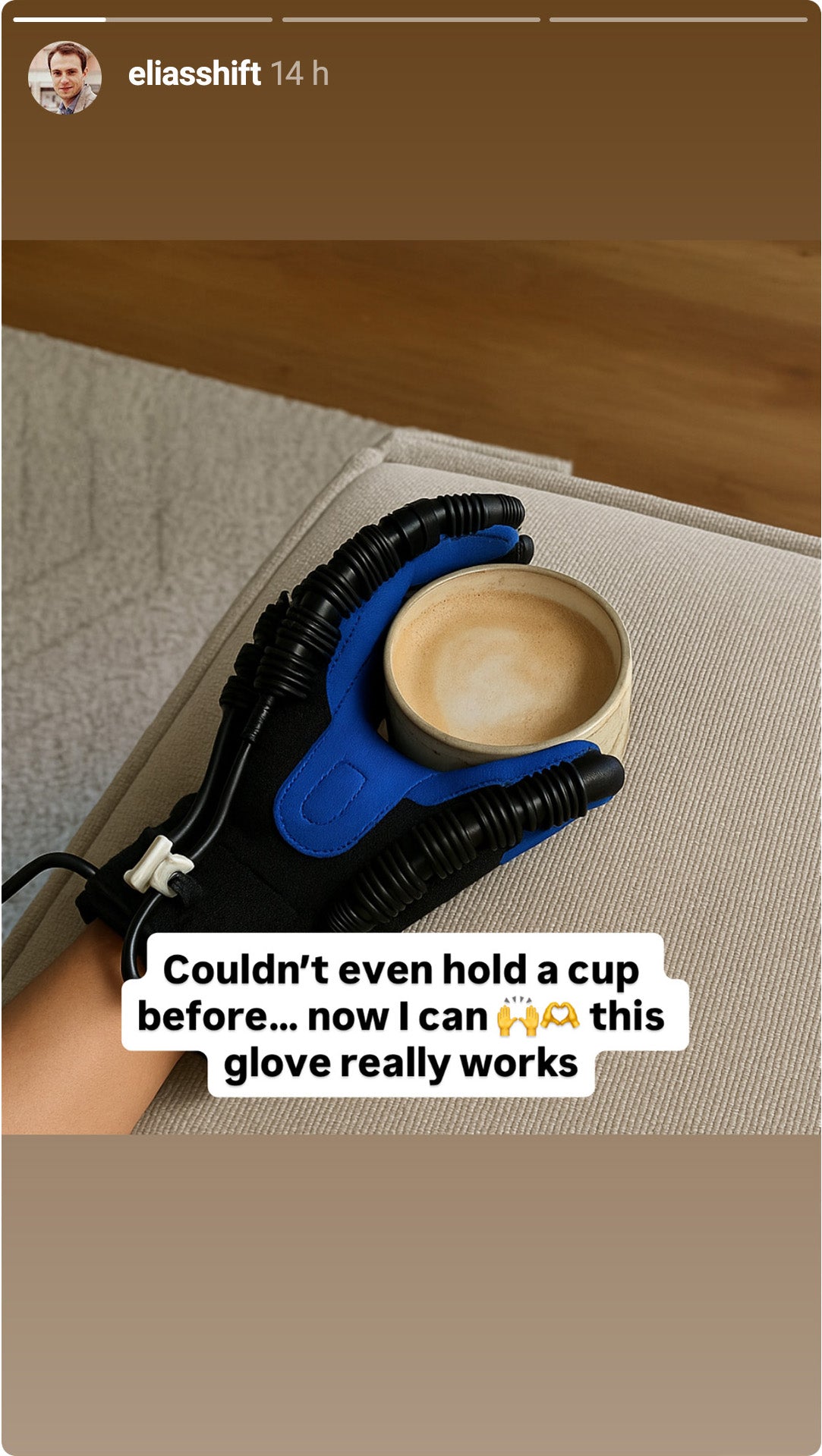 report stronger fingers — the glove’s automatic motion gives their hands a solid workout.